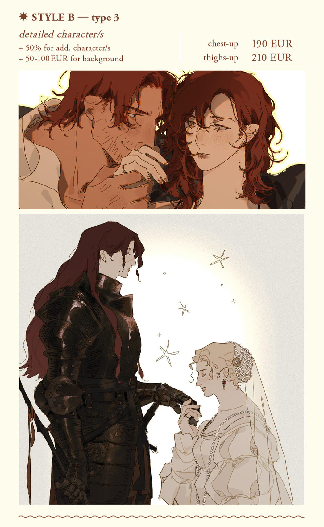 - Payment is in EURO and accepted via Paypal only – Please pay 100% upfront.- Commissions are non-refundable, except: the commission is canceled before rough sketch is sent out.► Commission's Usage