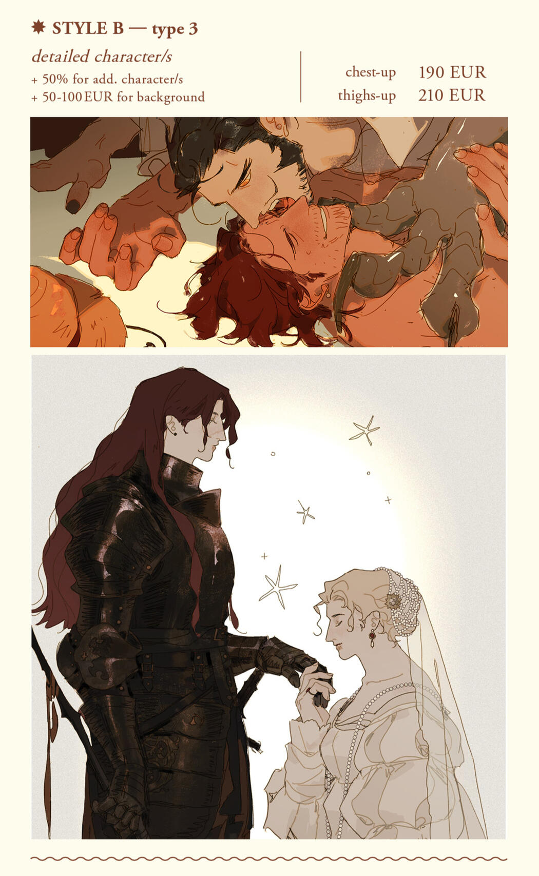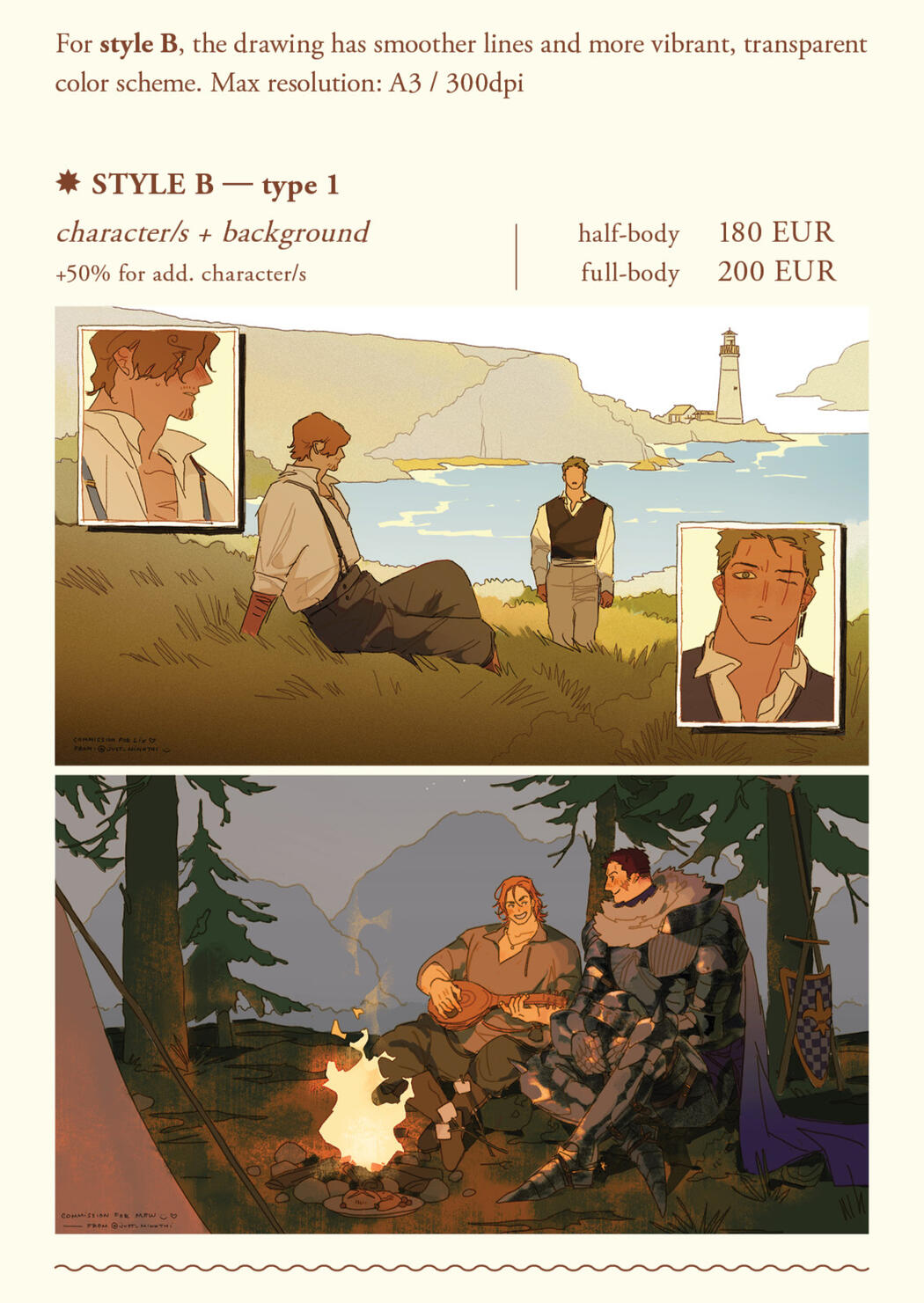 - Payment is in EURO and accepted via Paypal only – Please pay 100% upfront.- Commissions are non-refundable, except: the commission is canceled before rough sketch is sent out.► Commission's Usage